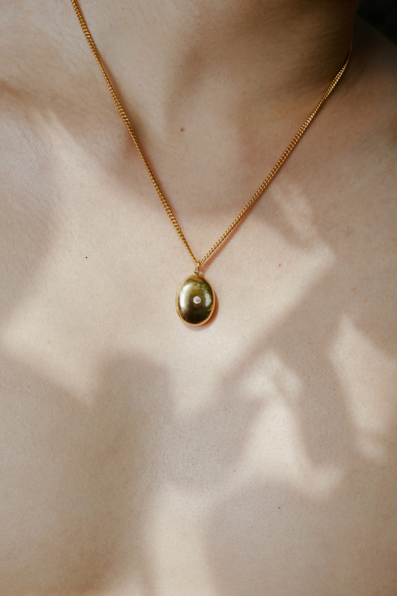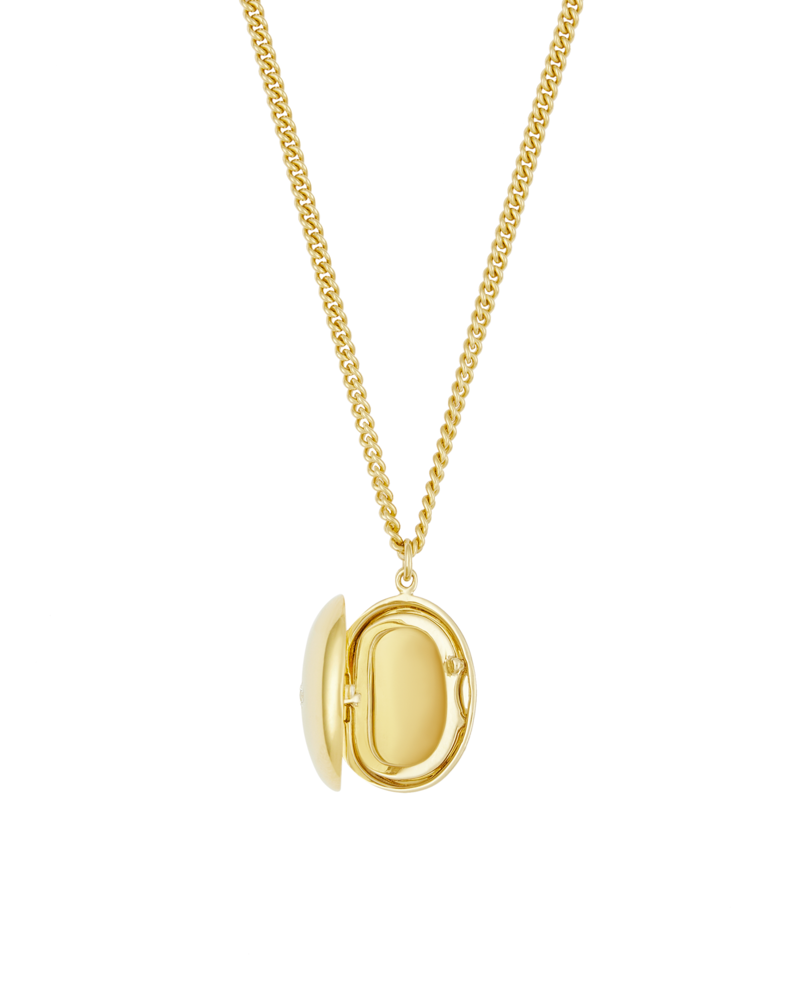 Chunky locket with an insert inside to hold a photo. Featuring a diamond on the outside of the locket.