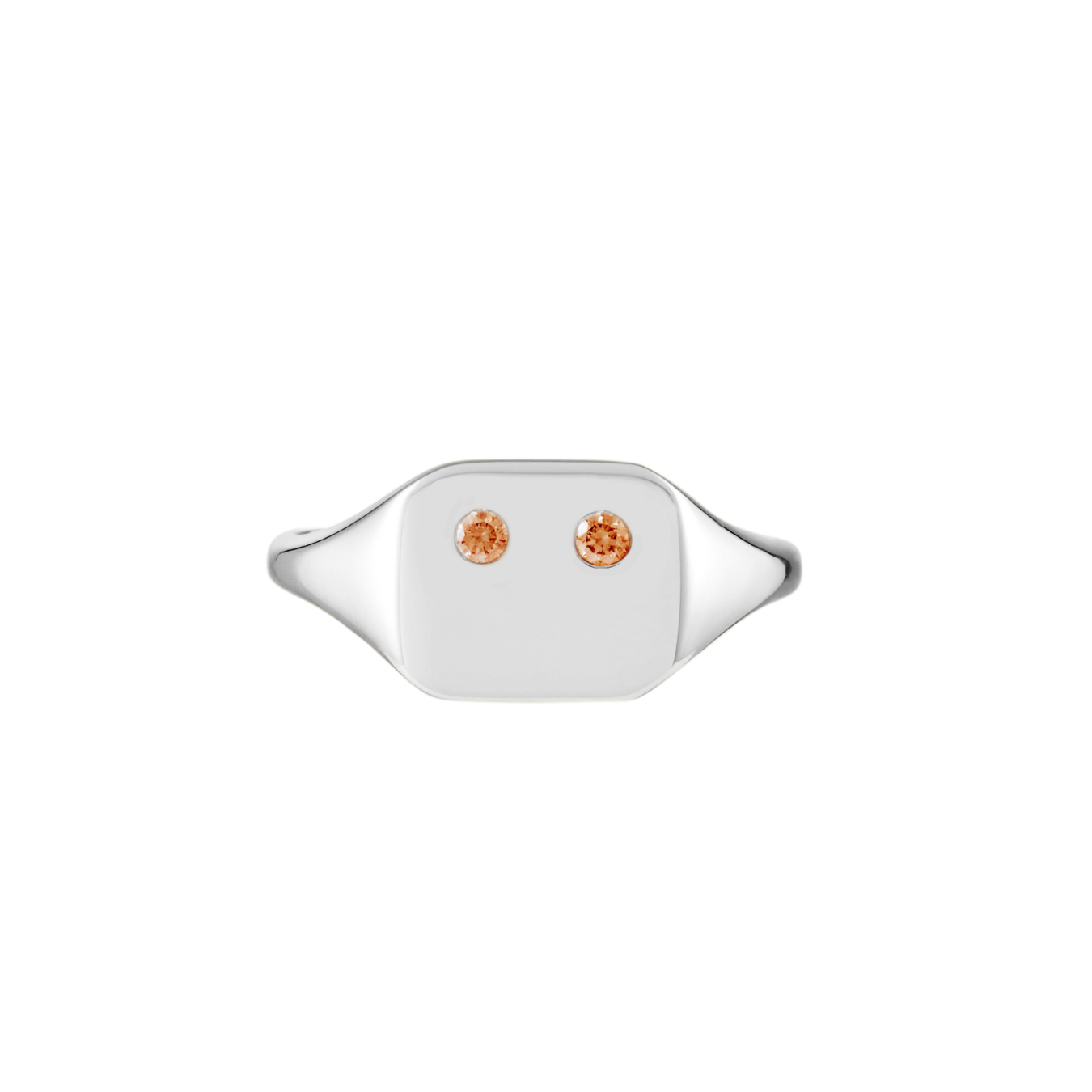 Beautiful everyday signet ring with beveled edges and face set with twin citrines, resembling the “eyes” of a minimalist emoji. Purposefully left without a mouth, the face becomes a blank canvas, allowing the wearer to define their mood each day.