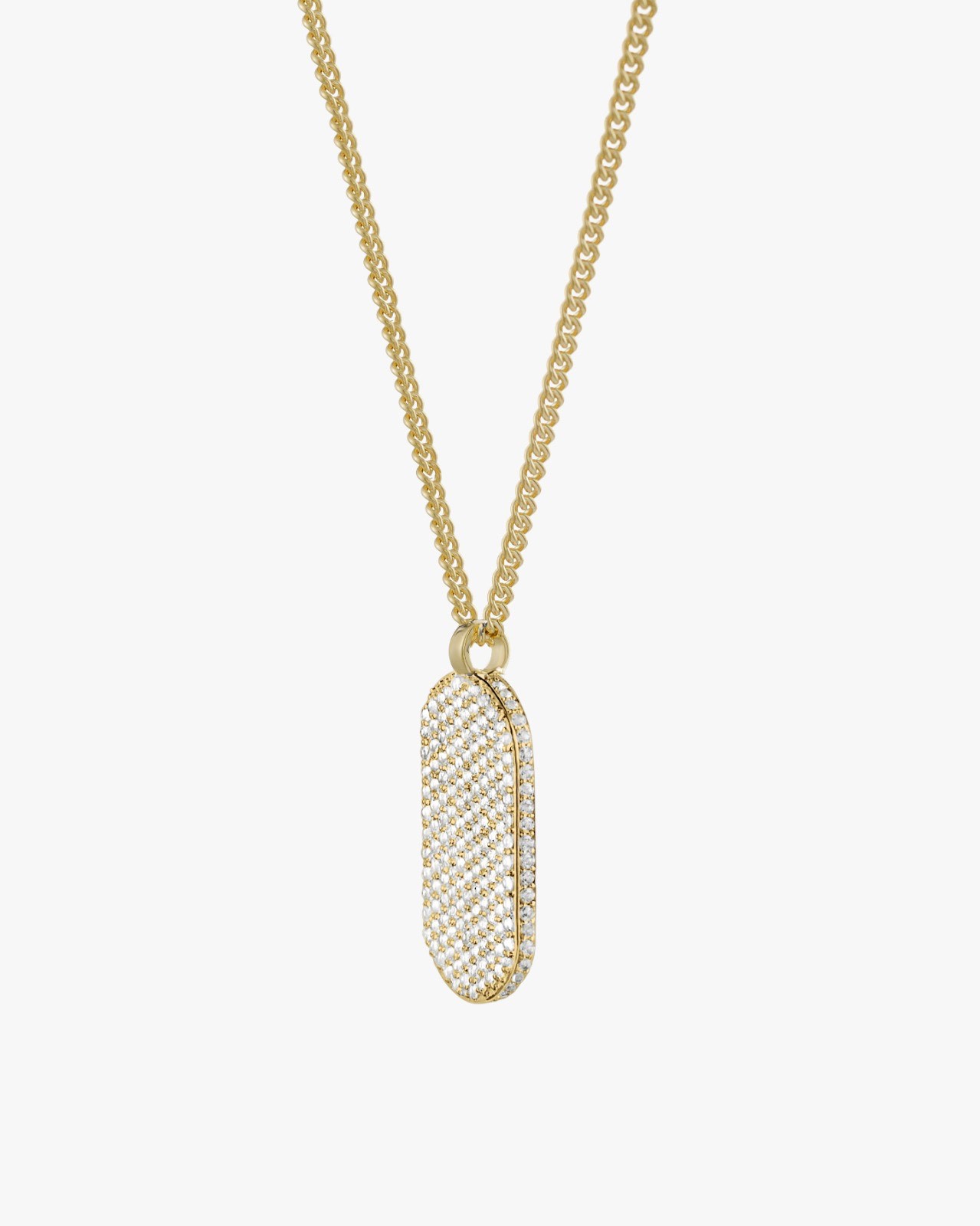 Our signature ID pendant is set with Diamonds on the front and around the pendant.
