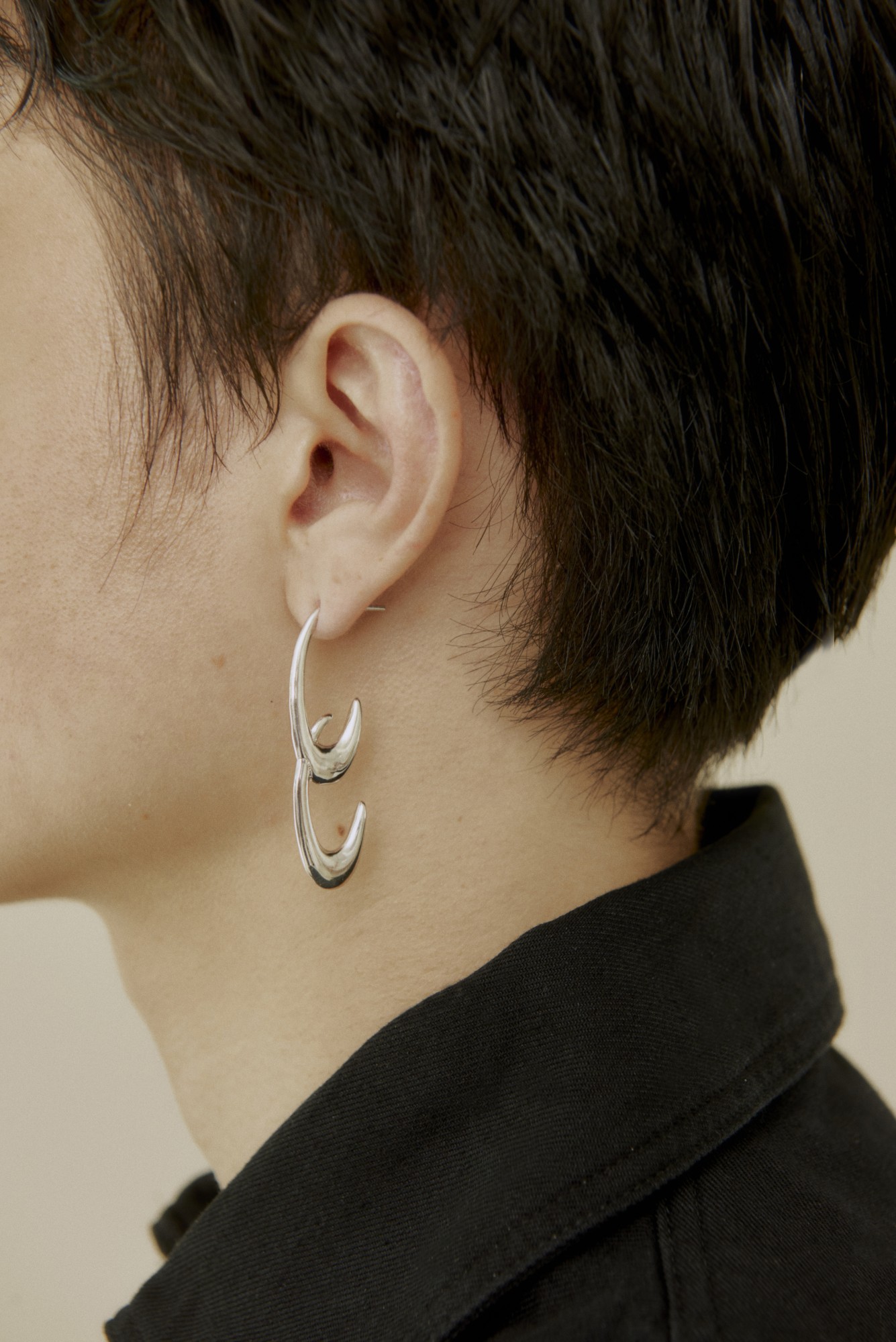 Garintr (meaning “elephant” in Thai) earrings with overlapping tusks. An homage to our national animal from our Tusk series, originally launched in May 2020. Available as singles or pairs.