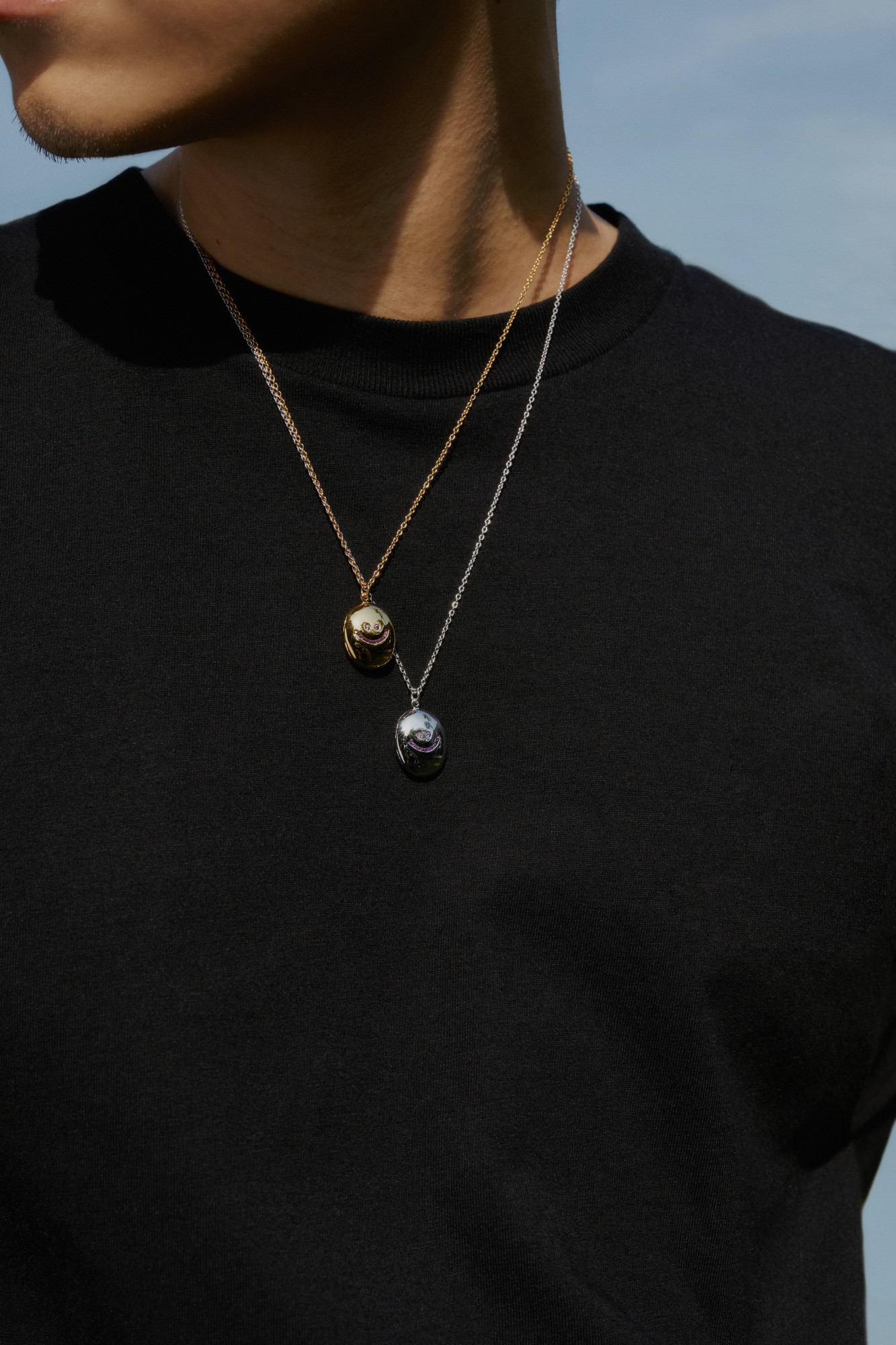 In Thai, “Yim” means “smile.” This fun locket features Amethysts for the smiley face. Gemstones may vary in color.