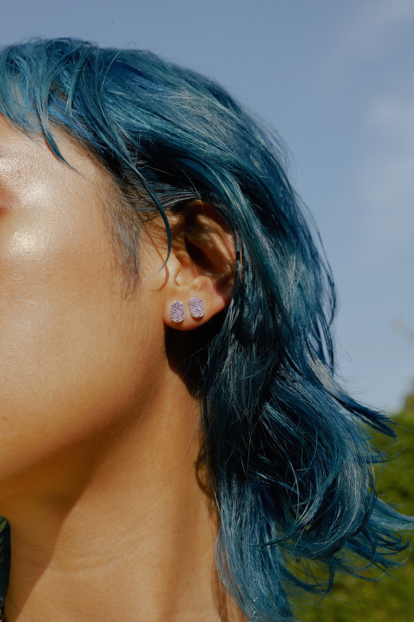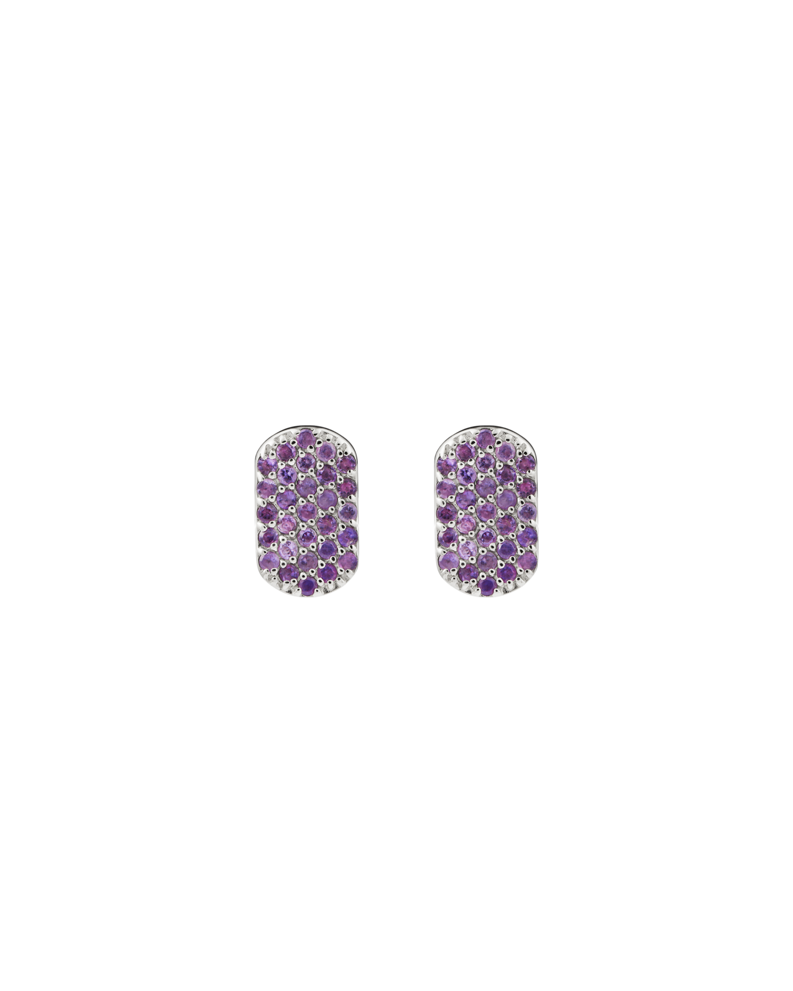 Sparkly studs featuring amethyst. Available as singles or pairs. Gemstones may vary in color.