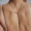 A single handcrafted bone-shaped pendant that is horizontally positioned and threaded through a fine curb chain, remaining free to swing gently with movement.