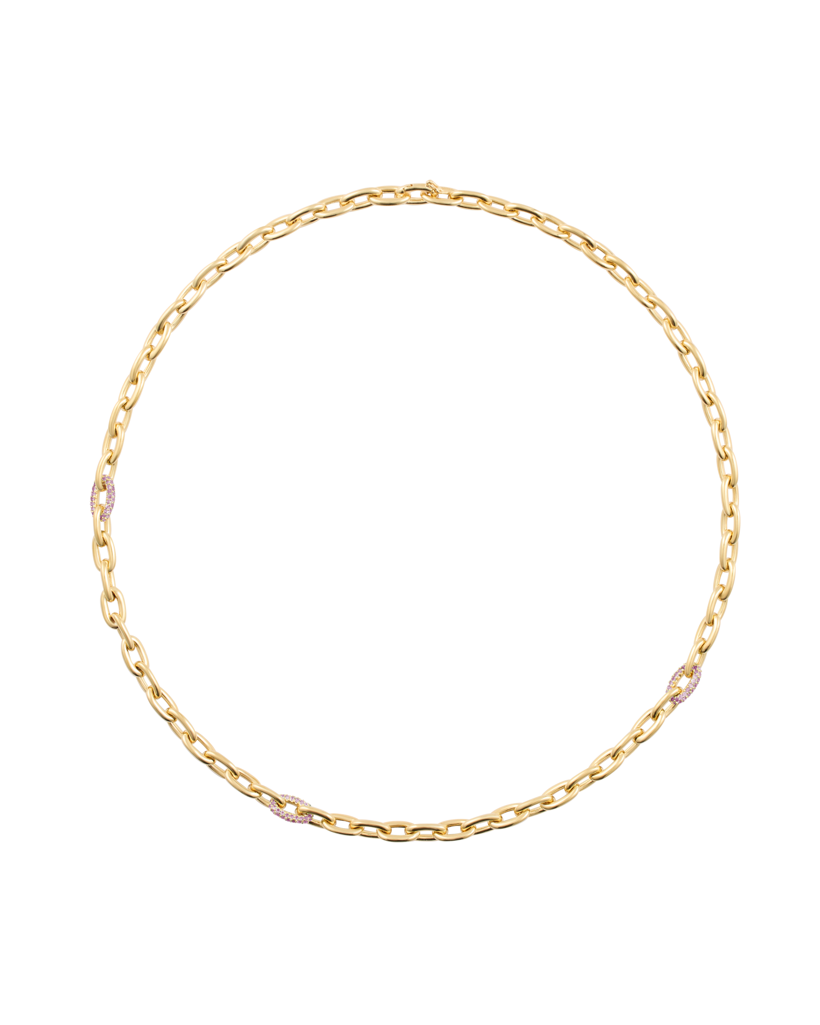 Introducing our Baby size in the seamless series for the first time with three pavé links. Featuring pink sapphires and a seamless custom clasp. Gemstones may vary in color.