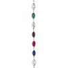 Featuring (not in this order) labradorite, emerald, white topaz, brown zircon, citrine, peridot, ruby, red garnet, and blue sapphire. Gemstones may vary in color and may contain natural inclusions.